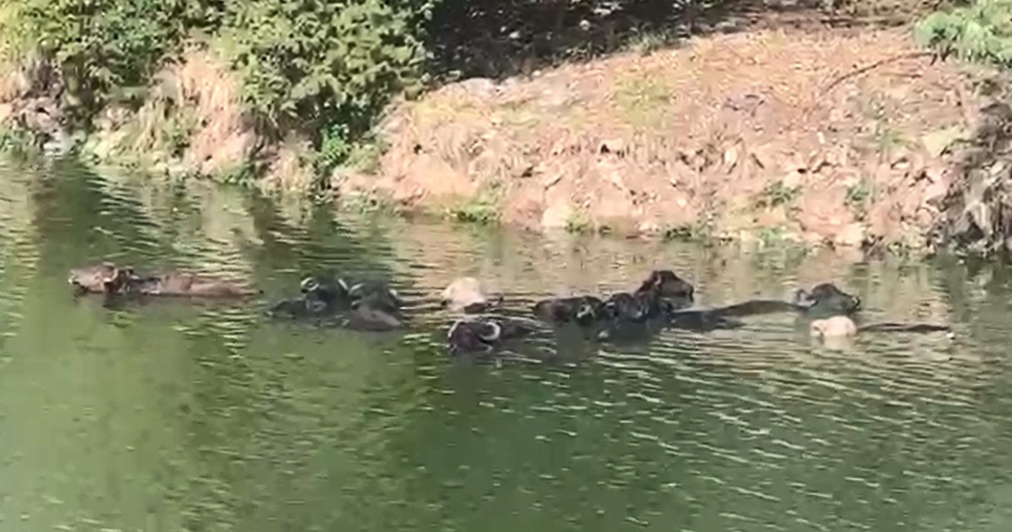 VÍDEO: Grupo de búfalos é visto tomando banho no Rio Pinheiros, na região de Santo Amaro, em SP
